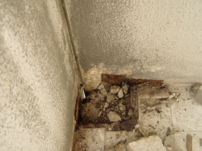 Realizzazione di ponteggio a tutt'altezza del fabbricato e demolizione di parti ammalorate sulla muratura lungo i prospetti e sulla terrazza. Demolizione dei pavimenti e dei massetti dei balconi; smontaggio ringhiere e corrimano in ferro da sostituire.